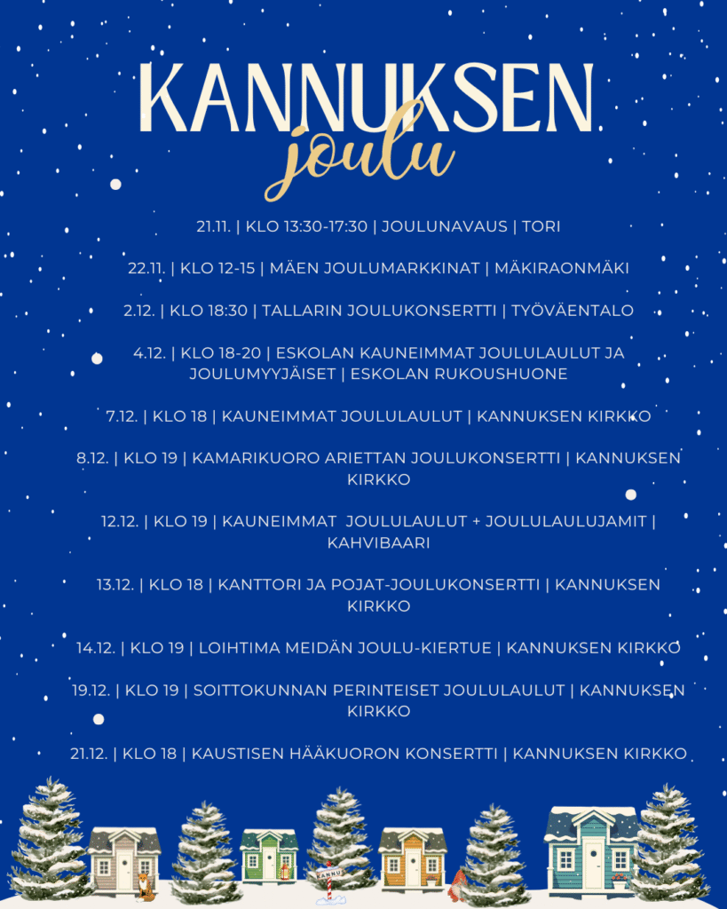 Kannus’ Christmas season is filled with atmospheric music events and Christmas markets. Traditionally, the opening of Christmas in Kannus marks the start of the festive season. This year, alongside the Christmas opening on November 21st, the new market square will also be officially opened. Take a look below at the upcoming events!