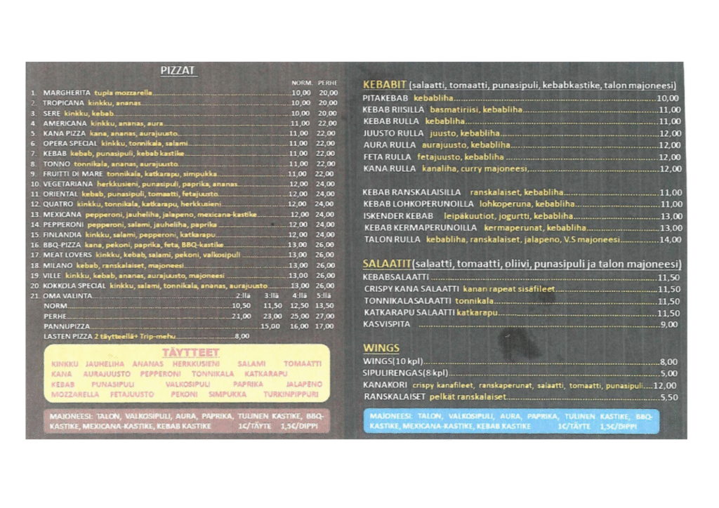 Located right in the center of Kannus, Restaurant Kebabish serves up delicious pizzas, kebabs, fresh salads, and juicy wings – something tasty for every taste!